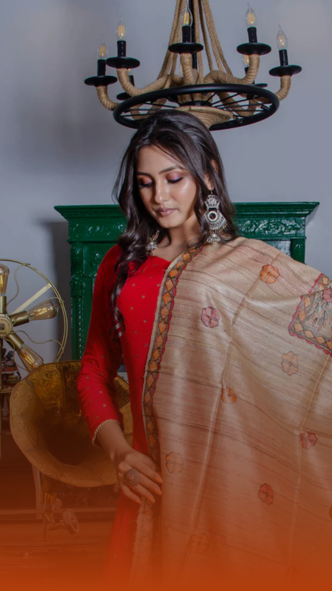Rust Color Dye Tussar White, Black Color Thread Work Kantha Stitch SareeVendor:Rust Color Dye Tussar White, Black Color Thread Work Kantha Stitch SareeKantha Shilpi