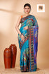 This elegant saree combines sky-blue and blue dyed tussar silk, featuring intricate multicolor thread work inspired by traditional Madhubani patterns. The striking peacock motif is brought to life through meticulous Kantha stitching, reflecting expert craftsmanship. Ideal for those who appreciate authentic Indian artistry, this saree offers a sophisticated blend of vibrant design and cultural heritage.