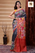 Zori Border and Checks Pure Dye Tussar Kantha Stitch Saree