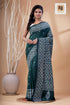 Dark Green Bangalore Silk White-Beige Thread Work Gujrati Stitch Saree
